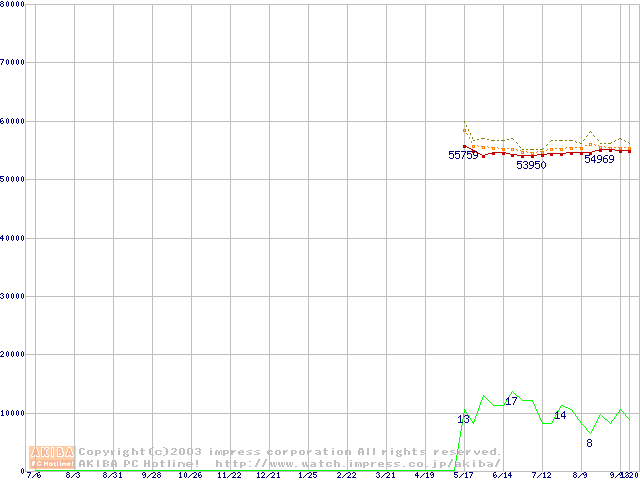 Socket A (OPGA,FSB 400MHz,L2 512KB,Barton)の最安値推移