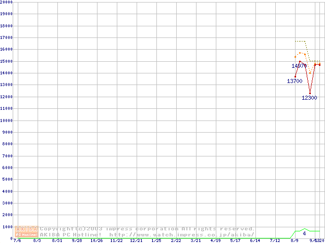 PC3200(DDR400) DDR SDRAM DIMM ECC対応 Registeredタイプの最安値推移