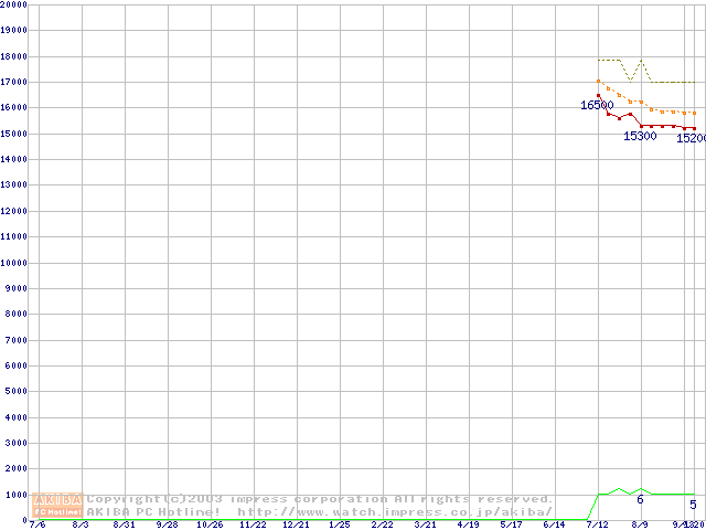 HDD主要製品(最安値1万5千円~2万円未満)の最安値推移