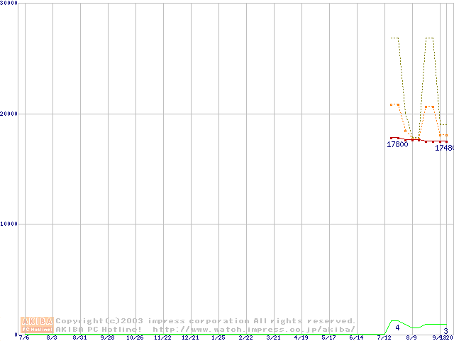 PC3700(DDR466) DDR SDRAM DIMMの最安値推移