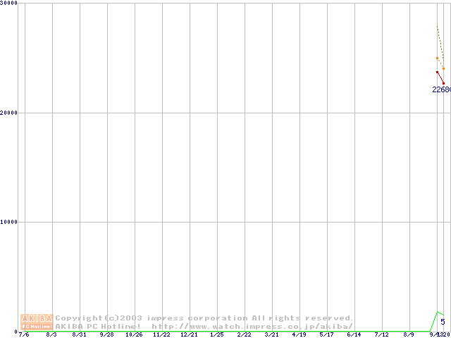 PC4300(DDR533) DDR SDRAM DIMMの最安値推移