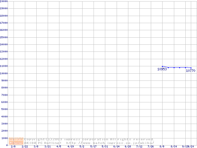 | [↑前グラフ]: | MHTシリーズ (9.5mm,4200rpm,UltraATA/100,2MB,FDB,40GB/Platter,FDB)の最安値推移 |