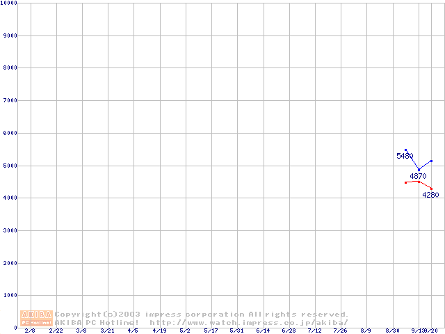 | [↓次グラフ]: | Socket A (PGA,FSB 200MHz,L2 64KB,Morgan)の最安値推移 |
