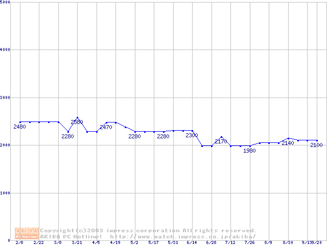 | [↓次グラフ]: | Socket 370 (PGA,FSB 133MHz,L2 64KB,Nehemiah)の最安値推移 |