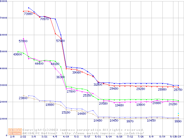 | [↓次グラフ]: | Socket A (OPGA,FSB 333MHz,L2 256KB,Thoroughbred)の最安値推移 |
