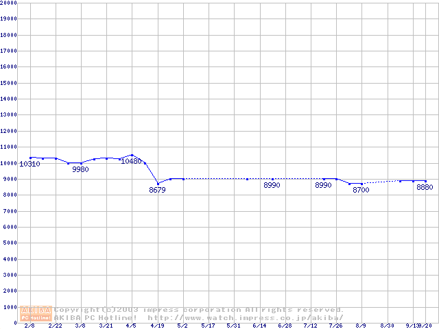 | [↑前グラフ]: | Socket A (OPGA,FSB 266MHz,L2 256KB,Thoroughbred)の最安値推移 |