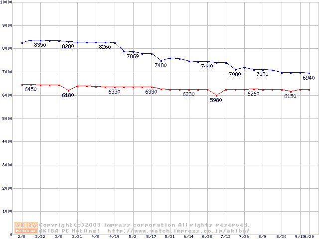 | [↓次グラフ]: | Socket 370 (FC-PGA2,FSB 133MHz,L2 512KB,Tualatin)の最安値推移 |