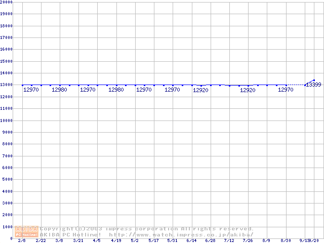 | [↑前グラフ]: | Socket 370 (FC-PGA2,FSB 133MHz,L2 512KB,Tualatin)の最安値推移 |