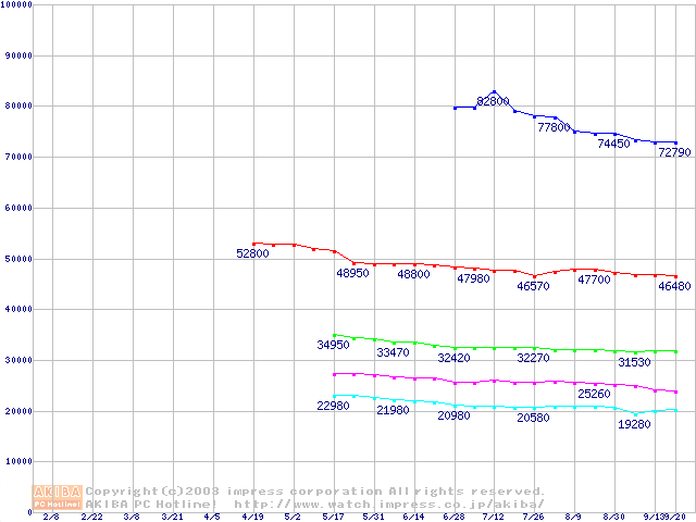| [↓次グラフ]: | Socket 478 (micro-PGA,FSB 533MHz,L2 512KB,Hyper-Threading,Northwood)の最安値推移 |