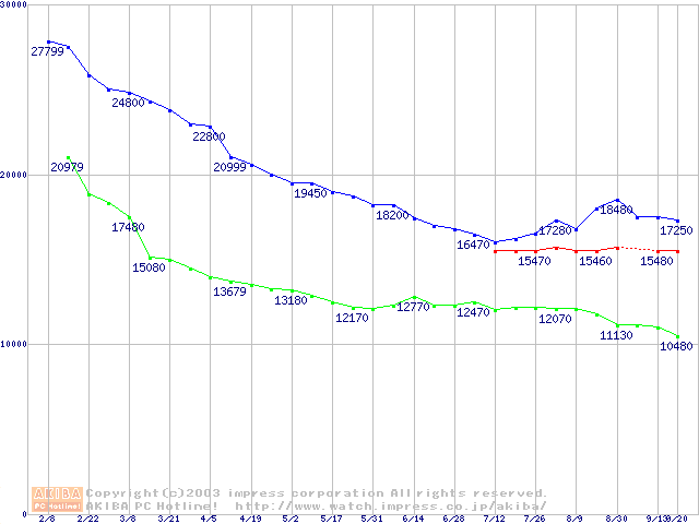 | [↑前グラフ]: | Deskstar 7K250 (7200rpm,UltraATA/100,FDB)の最安値推移 |