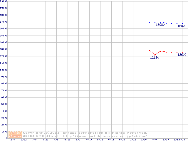 | [↓次グラフ]: | WD Caviar(Special Edition) (7200rpm,UltraATA/100,8MB)の最安値推移 |
