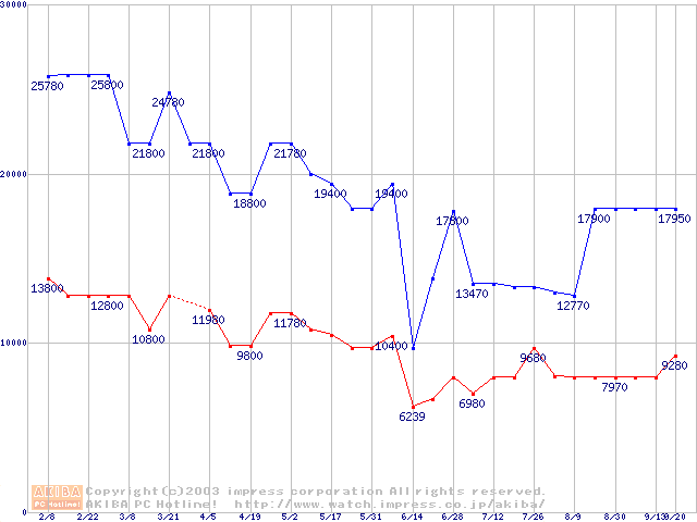 | [↓次グラフ]: | PC3700(DDR466) DDR SDRAM DIMMの最安値推移 |