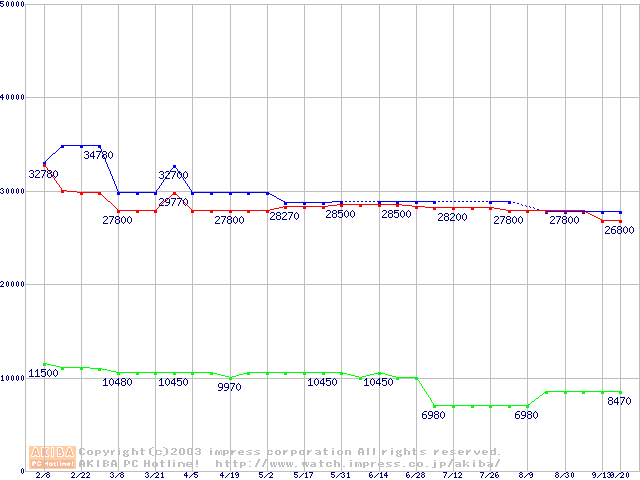 | [↓次グラフ]: | Socket 478 (micro-PGA,FSB 800MHz,L2 512KB,Hyper-Threading,Northwood)の最安値推移 |