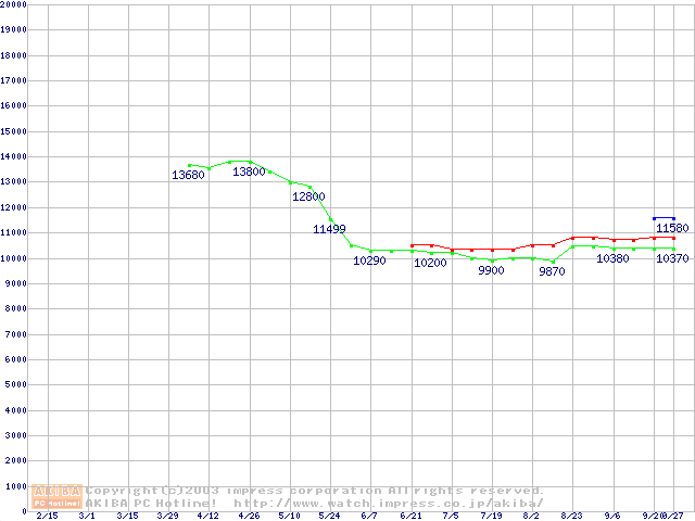 | [↓次グラフ]: | 2.5インチHDD 30GB~40GB未満(9.5mm厚)の最安値推移 |