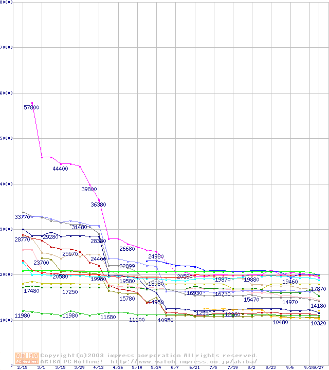 CPU主要製品(最安値2万円~3万円未満)の最安値推移