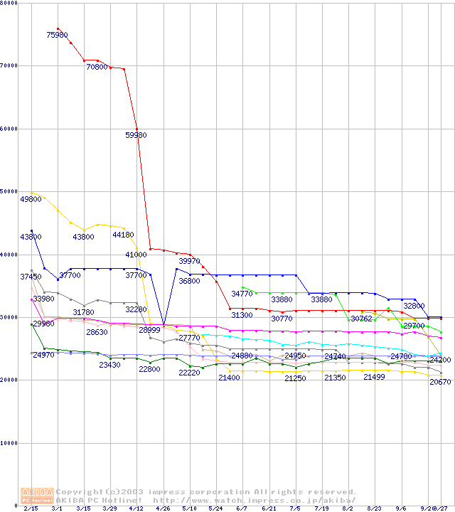 CPU主要製品(最安値2万円~3万円未満)の最安値推移