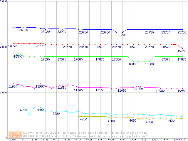 | [↓次グラフ]: | Socket 370・FSB 100MHzの最安値推移 |