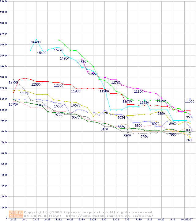 HDD 60GB~80GB未満(7200rpmクラス)の最安値推移