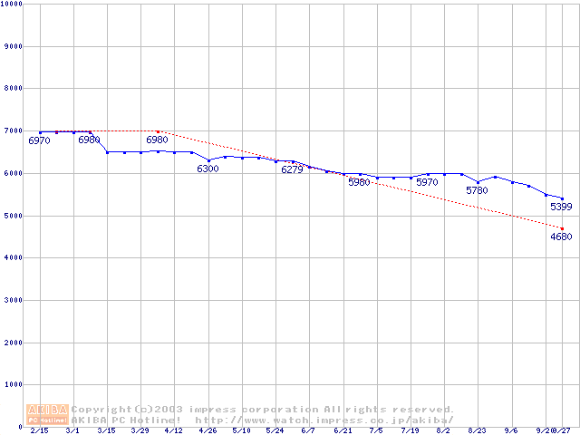 HDD 20GB~30GB未満(5400rpmクラス)の最安値推移