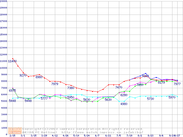 メモリ主要製品の最安値推移