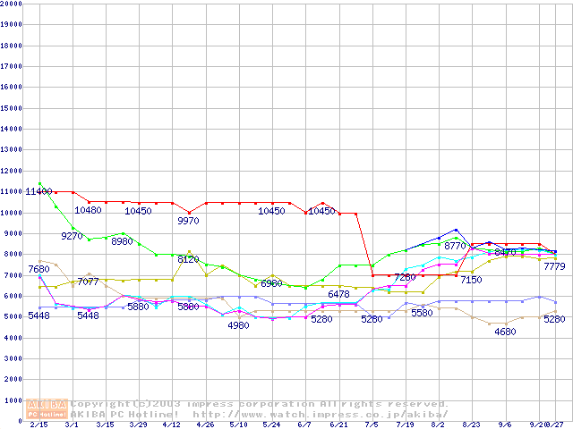 メモリ主要製品(最安値5千円~1万円未満)の最安値推移