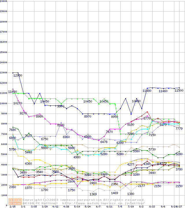 メモリ主要製品の最安値推移