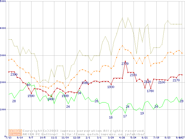 PC133 SDRAM DIMM CasLatency=3の最安値推移