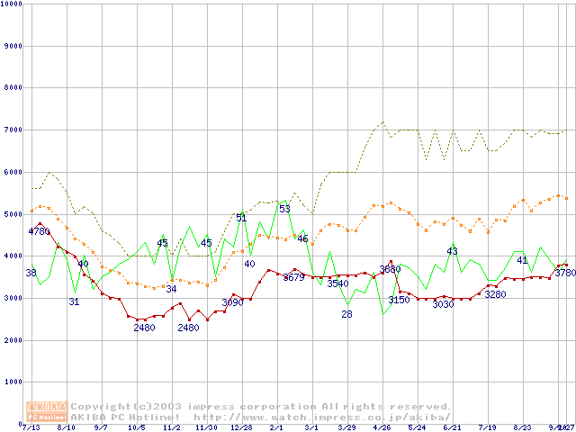 PC133 SDRAM DIMM CasLatency=3の最安値推移