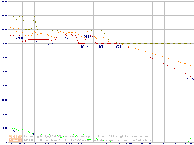 WD Protege (5400rpm,UltraATA/100)の最安値推移