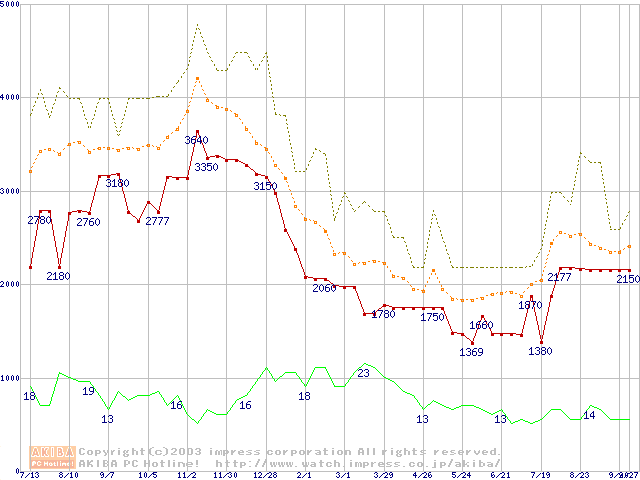 メモリ主要製品の最安値推移
