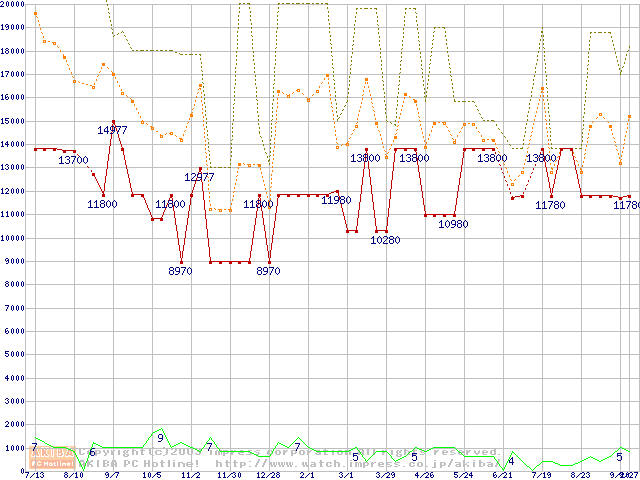 PC133 SDRAM DIMM CasLatency=3 ECC対応 Registeredタイプの最安値推移