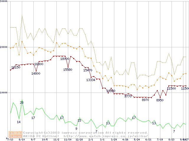 メモリ主要製品の最安値推移