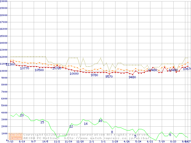 MKシリーズ (9.5mm,4200rpm,2MB,FDB,20GB/Platter)の最安値推移