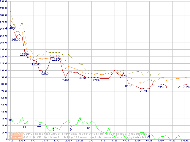 Socket A (OPGA,FSB 266MHz,L2 256KB,Palomino)の最安値推移