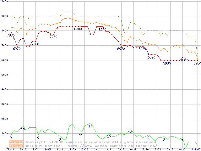 WD Protege (5400rpm,UltraATA/100)の最安値推移