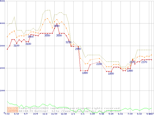 PC2100(DDR266) DDR SDRAM DIMM(CL 2.0)の最安値推移