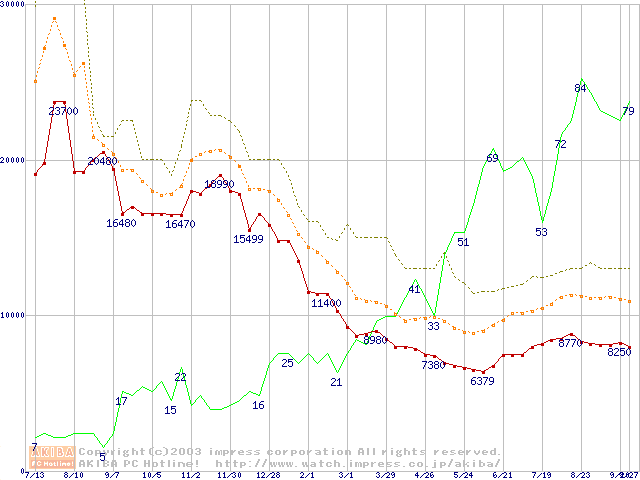 PC3200(DDR400) DDR SDRAM DIMMの最安値推移