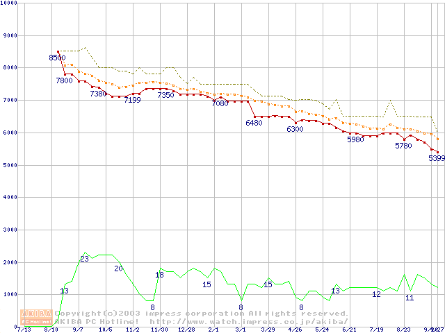 HDD 20GB~30GB未満(5400rpmクラス)の最安値推移
