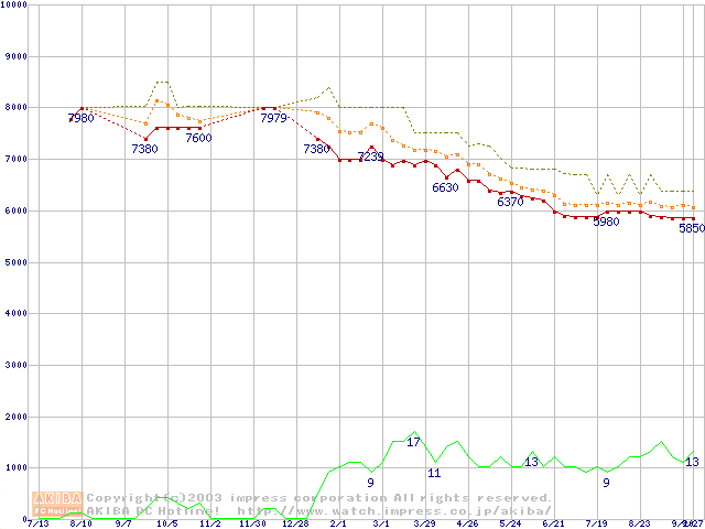 Fireball 3 (5400rpm,UltraATA/133,2MB,FDB)の最安値推移