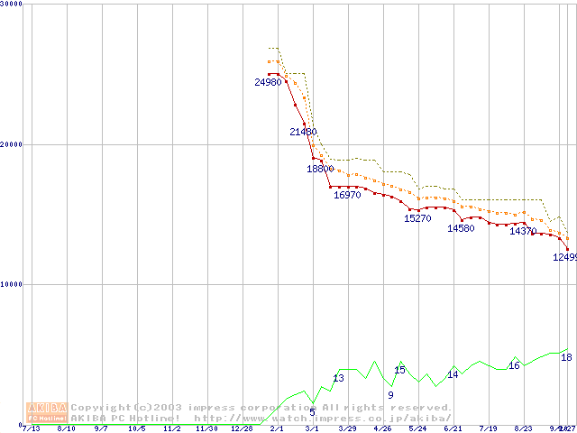 DiamondMax 16 (5400rpm,UltraATA/133,2MB,80GB/Platter,FDB)の最安値推移