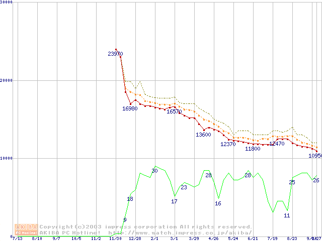 DiamondMax Plus 9 (7200rpm,8MB,UltraATA/133,FDB)の最安値推移