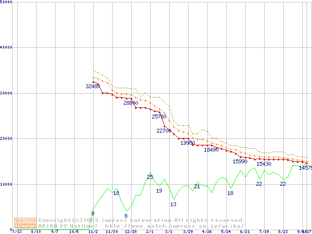 DiamondMax Plus 9 (7200rpm,8MB,UltraATA/133,FDB)の最安値推移