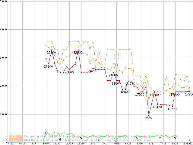 PC3500(DDR433) DDR SDRAM DIMMの最安値推移