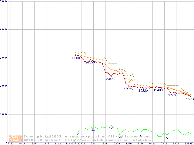 Socket A (OPGA,FSB 266MHz,L2 256KB,Thoroughbred)の最安値推移