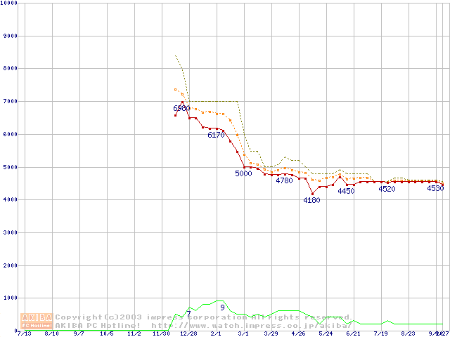 Socket 370 (PGA,FSB 100MHz,L2 64KB,Ezra)の最安値推移