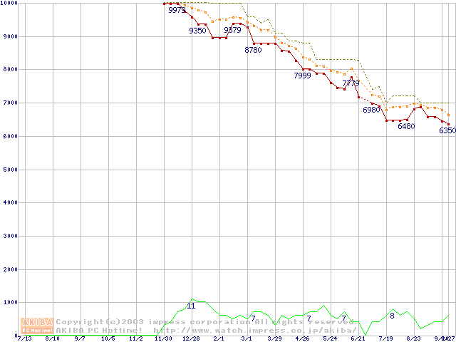 Deskstar 180GXP (7200rpm,2MB,UltraATA/100,FDB)の最安値推移