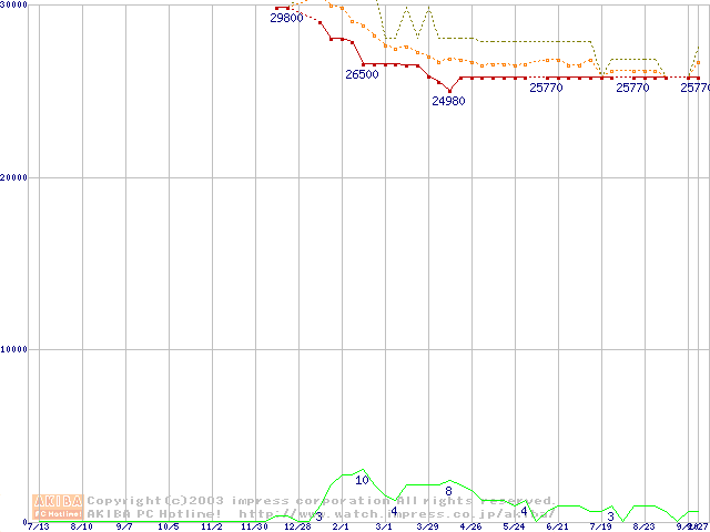 Socket 604 (micro-PGA,FSB 533MHz,L2 512KB,Prestonia)の最安値推移
