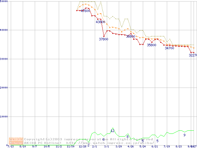 Xeon 2.66GHz(FSB533) リテールパッケージの価格推移