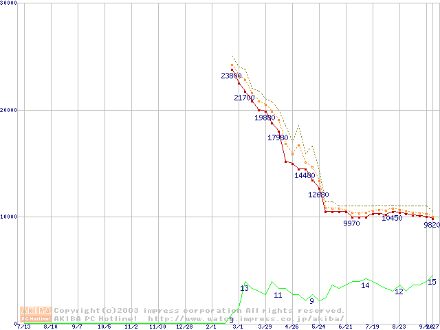 Socket A (OPGA,FSB 333MHz,L2 512KB,Barton)の最安値推移