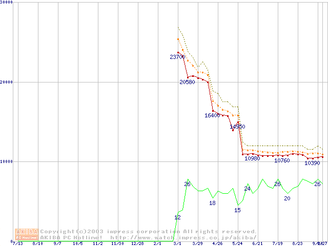 Athlon XP 2500+ (1.83GHz) リテールパッケージの価格推移
